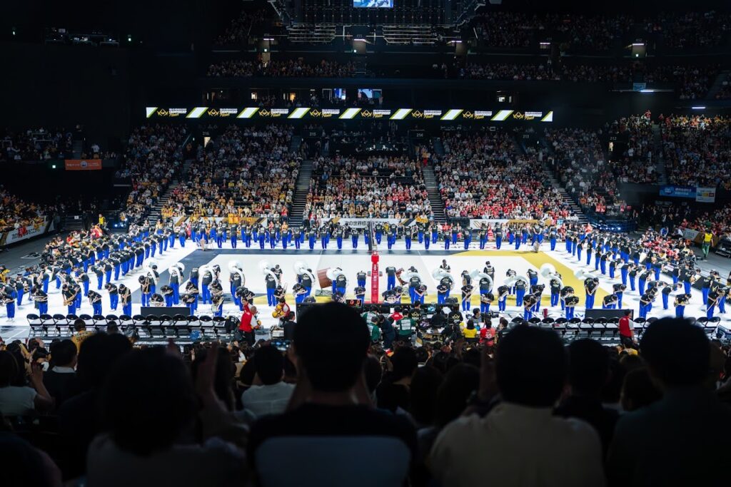 とはいえ大きな会場ともなれば遠くて表情とかまでは見えない。となるとそこを補完するのが大型スクリーン。これはアーティストのライブも一緒ですね。そして選手の得点シーンとかをクローズアップしてそこを強調することで、その選手の魅力をより伝える。これが例えばその選手をスクリーンに大きく映し出してテロップとかを入れたり、そしてMCが大きな声で選手名を叫んだり…。つまりショーアップですね。