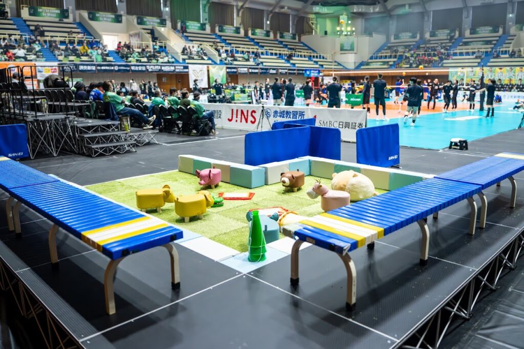 せっかく群馬の話になったのでホームゲームについて。V2時代も足を運んだ私にとって、SV仕様になった群馬のホームゲームは、その分照明など演出もグレードアップしていて楽しかったです。コートサイドには子供が楽しめるスペース(しかもちゃんとメガホンが置いてある!)もあるのはめちゃくちゃいいなと思いました。