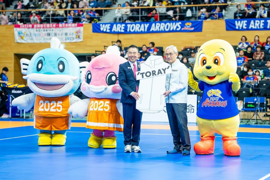 まああとホームゲームとしては、この日は滋賀県「わたSHIGA輝く 国スポ・障スポ」プレゼンツマッチ」として開催されたのですが、その関係で場内には各スポーツの体験ブースも用意されたり(私もモルックとか体験しました)、そして東レの素材が使われたスタッフウェアが贈呈されたりと、この年に開催される国スポ・障スポのPRにもなっていたのもポイントでした。