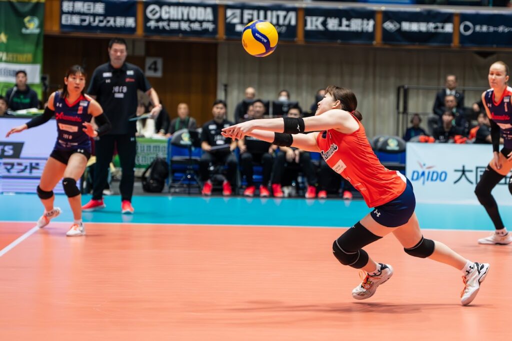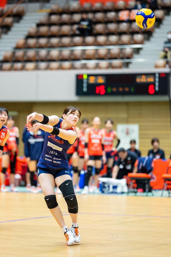 昨シーズンはリリーフサーバーから後衛の守備に入るのがメインでそれほど出番がなく、試合前も和気藹々と練習していたのですが、有薗選手が退団してチーム唯一のリベロとなってからは練習風景も真剣そのものになって、とまあ、選手であれば誰にでもある、少女が大人になっていく過程みたいなものをこの一年で見られたんですよね。