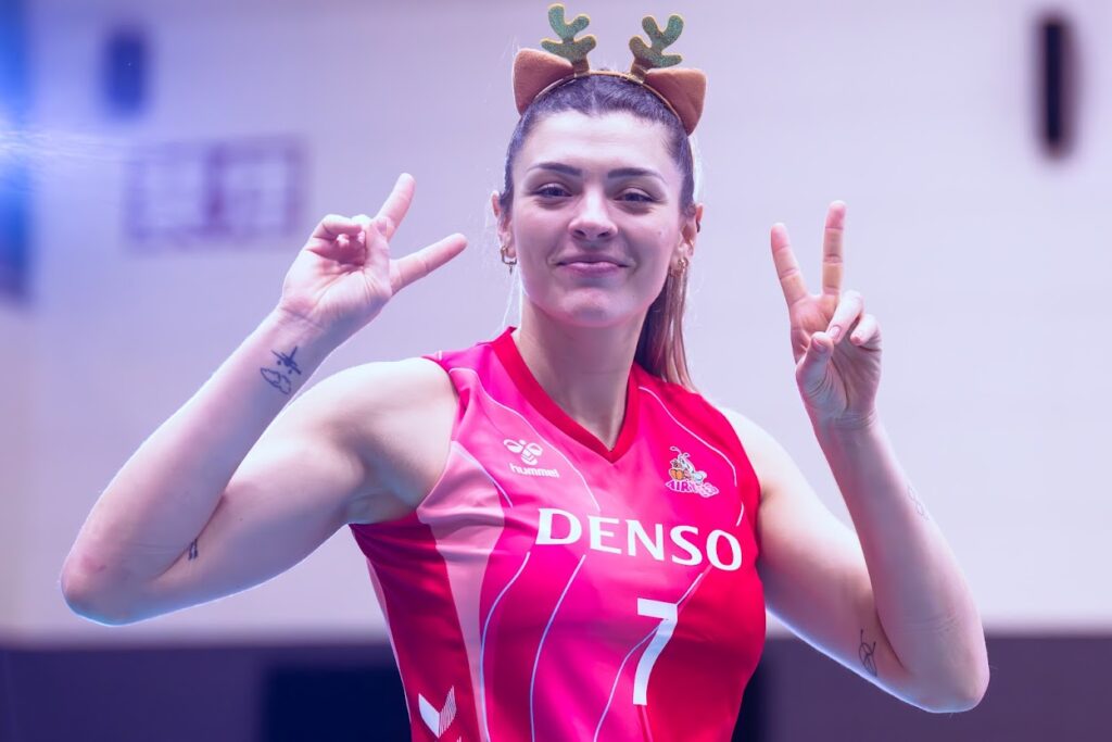 言わずと知れたバリバリのブラジル代表選手。2023/24シーズンから日本にやってきましたけれど、正直一シーズンだけだと思ってました。というのもシーズン終了後にはパリ五輪がありますし、代表選手招集のためにVリーグ(当時)は2月には終わるという短縮日程でしたから(その後にVCup開催)、普段5月近くまでやっている欧州より休みも多い。そんな調整という形で来たのかな…と。何せバリバリのブラジル代表選手ですから、そんな選手がこう言っては何ですがわざわざ日本を選ぶなんて、そんな理由しか思いつかなかったわけです。