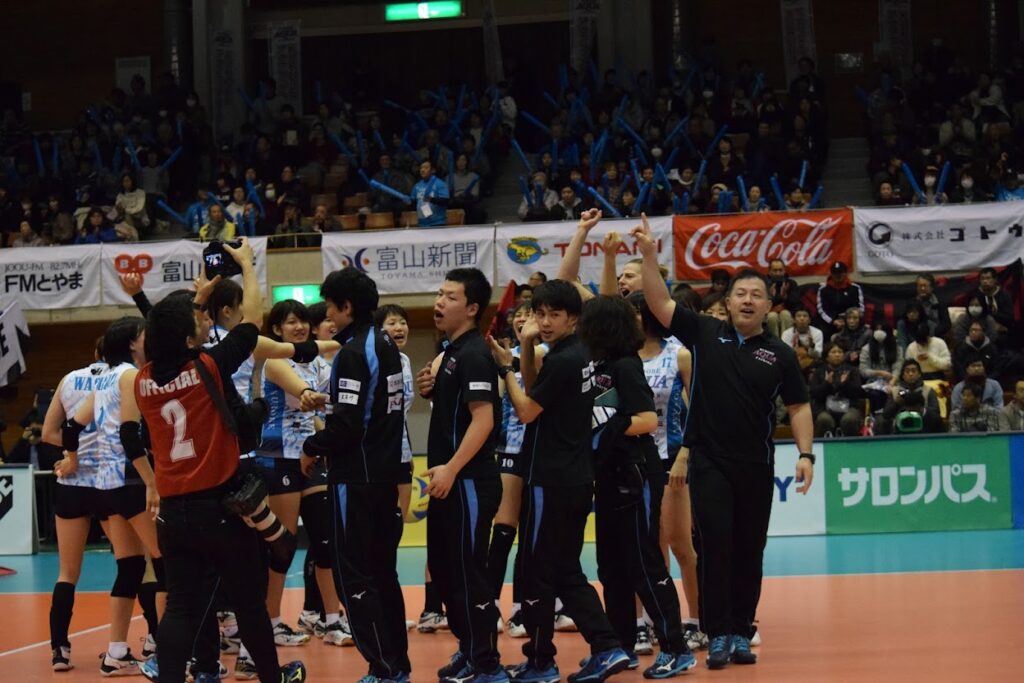 しかもこの年明けの冬の黒部は、試合後も楽しかった。泊った魚津の街の居酒屋にはゲンゲがあったり、日本酒も種類がたくさんあり、酒好きには天国だった。今はなくなってしまったが魚津ならではの「蜃気楼の見える街」という地酒もあり、Vリーグを通してのスポーツツーリズムに興味を持ったのは間違いなくこの遠征のときだった。