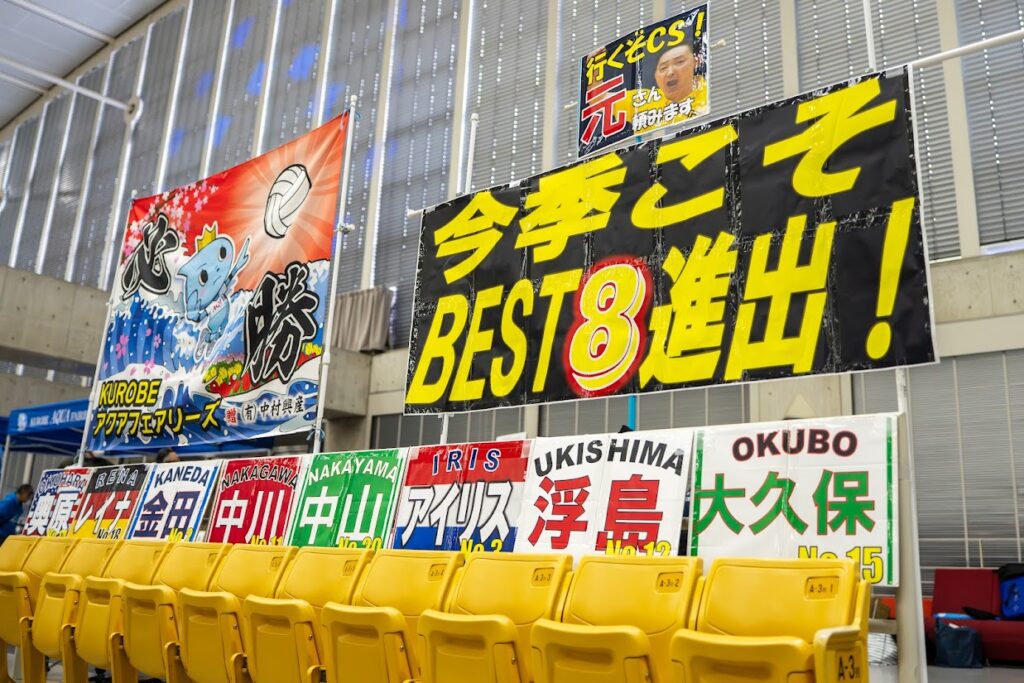 しかし、KUROBEのホームゲームはさらに進化していた。彼らのエリアに「今季こそBEST8進出!」という大きなボードが掲げられていたのが、何より今シーズンのチームを物語っていた。うらやましかった(ウチは…以下略)。しかしこれほど「気」の伝わってくる団席というのはSV女子にはなかなかない。