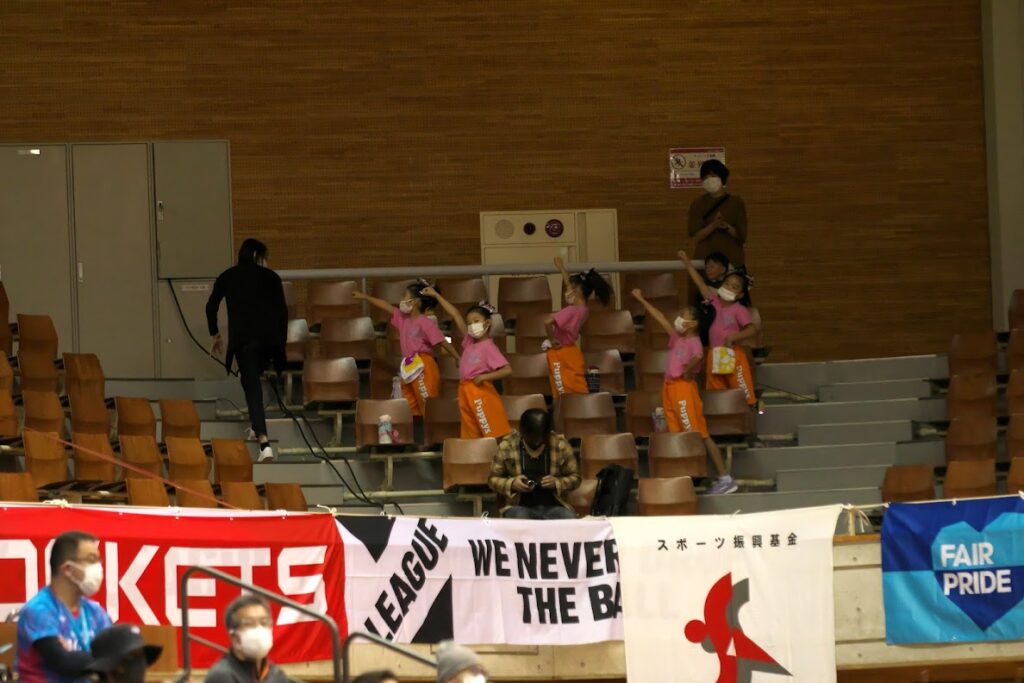 そんなPuppysは今も変わらずKUROBEのホームゲームに駆け付けて、開場時は入口で出迎えて、試合前と第二セット後はコートでパフォーマンスを繰り広げ、試合中もスタンドに分散して応援している。なにせ日本選手権で優勝したこともあるチームだ。何よりすれ違うたびに「こんにちは!」と全力で挨拶してくれるし、ほんと、だいぶ大人の私が恥ずかしくなるくらい、すごくしっかりした子たちなのだ。