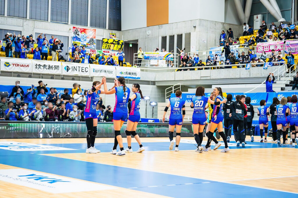 試合は二日ともKUROBEの勝利で終わった。日曜は二セットを先取されてからの大逆転勝ちとあって会場は沸き立った。自分の推しチームとの対戦なら複雑な気分で見る光景も、この日は純粋に見られたし、何より「いい光景だな…」と思った。彼らは次々とハイタッチをして喜びを分かち合っていた。