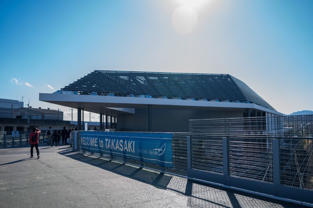 新幹線の車窓から見える高崎アリーナ。だがこの日はちょっと様子が違った。