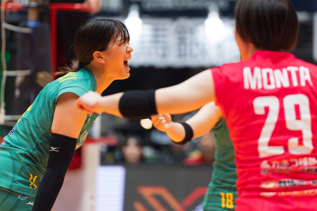 そんな思いがあったのかはわからないが、続く第二セットでブロックは決めるわ、サービスエースは決めるわ、体を張ったディグを見せるわ…。そんな姿を見ていたら自然とそう考えるのは当然だろう。派手なガッツポーズを見せたり、彼女は気持ちを全開にして戦っていた。