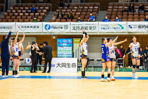 土曜の試合前に東レアローズ滋賀の一員が深呼吸して吸ったのは、そんな、黒部市総合体育センターの空気だった。空気を吸って、そしてあのボードを見て選手たちの心に火が付いた。